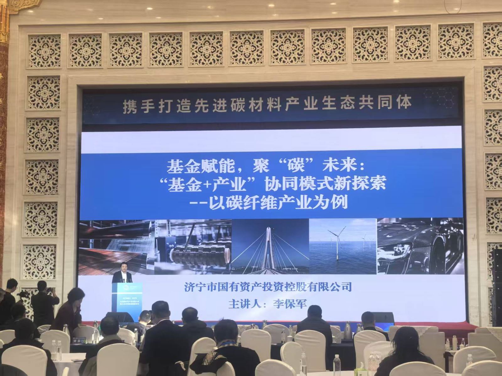 会上,李保军发表《基金赋能,聚“碳”未来:“基金+产业”协同模式新探索——以碳纤维产业为例》主题演讲,结合济宁国投实践,从三大维度分享产融协同赋能碳材料产业的路径。一是围绕济宁市“232”产业集群,打造了总规模181亿的基金矩阵,构建“投前研判、投中管理、投后赋能”全流程体系,累计投资136个项目,助力13家企业上市、并购。二是通过组建先进碳材料工程技术研究院、设立先进碳材料专项基金等模式,成功投资益大新材、恒圣石墨等标杆企业,为产业发展提供研发到投产全链条支撑。三是以夯实产融协同根基、拓展区域协同维度、强化产业研究三大方向为重点,挖掘新材料领域投资机会,精准对接优质技术与项目资源。